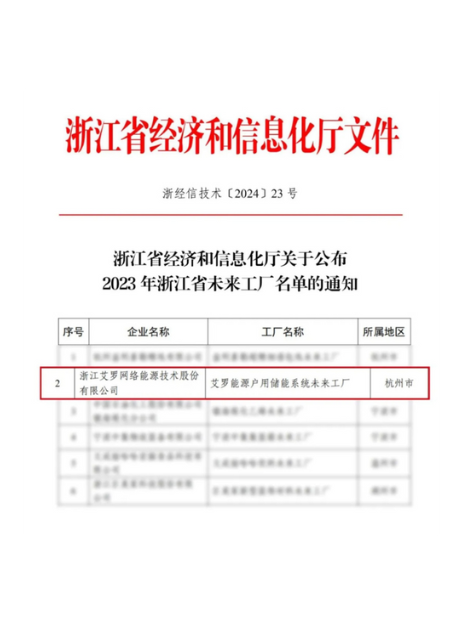 2024:“Ag亚洲集团能源户用储能系统”上榜浙江省未来工厂